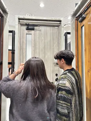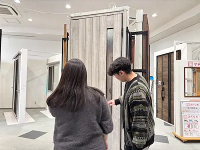 ショールームでは室内側からのドアデザインも確認することができます。そちらもしっかり確認していただきました。