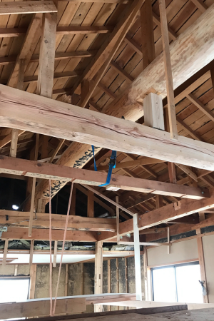 棟上げとは、家の構造主要部(梁や柱)を組み上げる工程です。