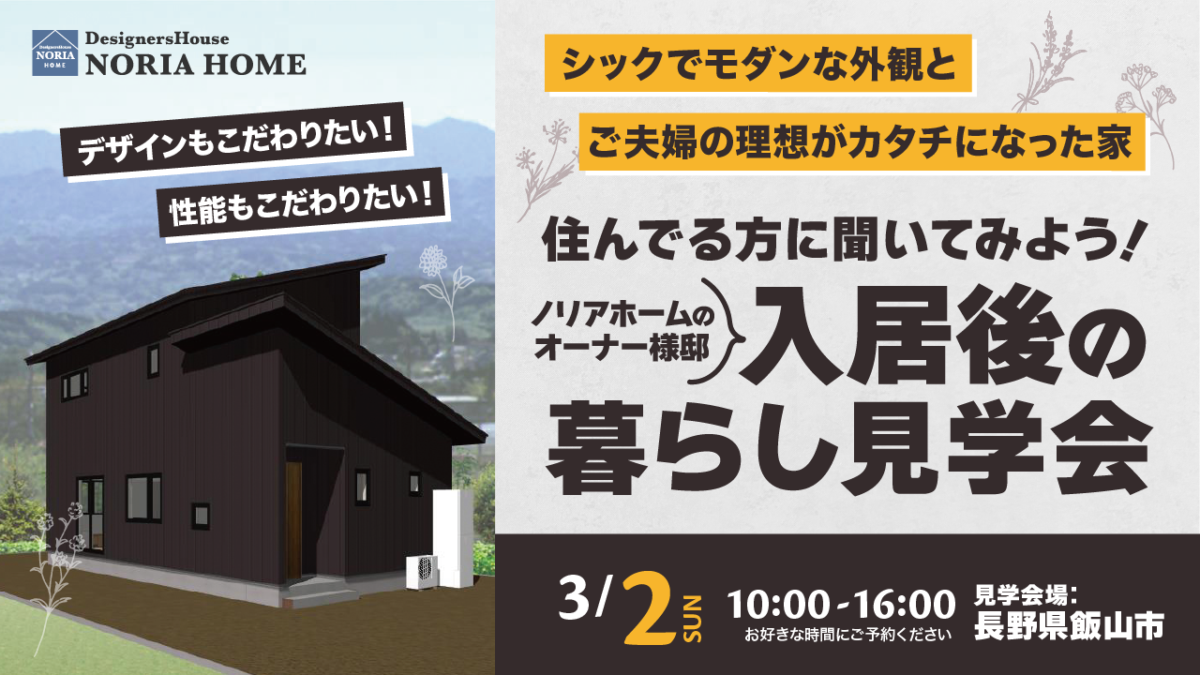 今回の見学会では、随所にこだわったポイントとNORIA HOMEの家づくりを、ご家族で楽しみながらご覧ください。