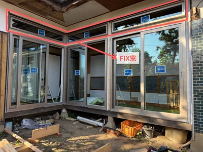 新取付窓:樹脂サッシ+ペアガラスの掃き出し窓とFIX窓