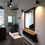 白とウォルナットでまとめた大人シックな雰囲気が落ち着くサロン。